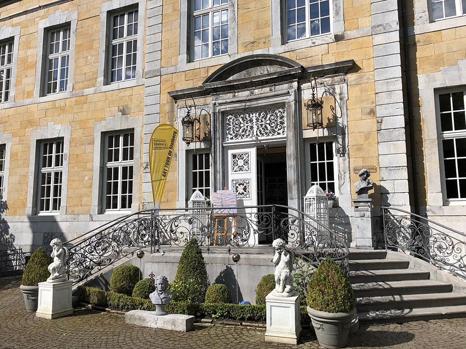 George Theegarten freut sich auf die exklusive Ausstellung seiner Werke im „Stadtschloss“ Kupferhof Rosental. Ebenso die Hausherrin Monika Lück, die dem Aachener Künstler gerne zur 10. Kunstausfahrt „Kupferhof-Asyl“ gewährt und damit erneut die Stolberger Kunstroute unterstützt. Mittlerweile ist dank ihres Engagements die in den 90er Jahren vom Verfall bedrohte Stadtvilla Rosental wieder ein Kleinod geworden, die als Standesamt und begehrte Hochzeitslocation